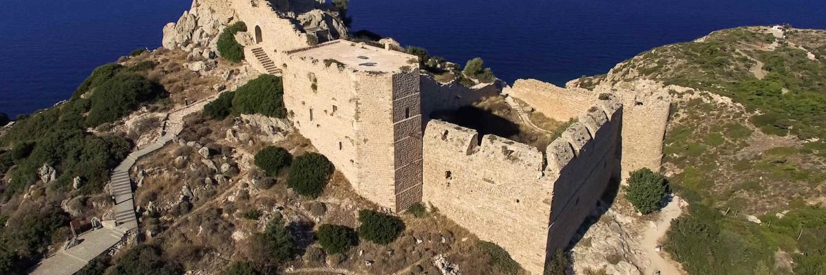 Il castello è situato su un’altura da cui potrai goderti una spettacolare vista sul mare e sulle isole di Halki e Alimia. Tutto l’ambiente è selvaggio e, se ci andrai nel tardo pomeriggio, potrai ammirare le mura che si tingono di rosso al calar del sole.